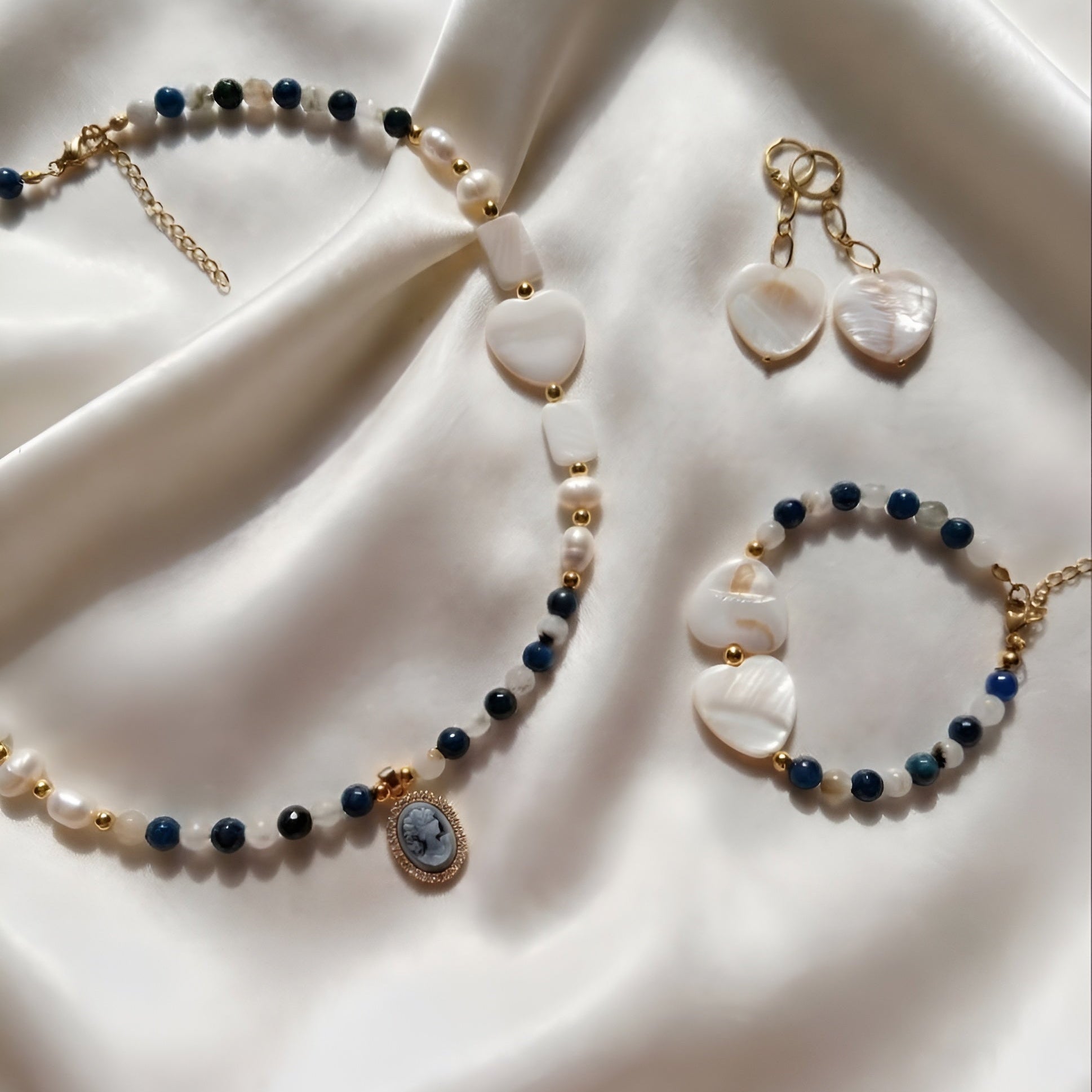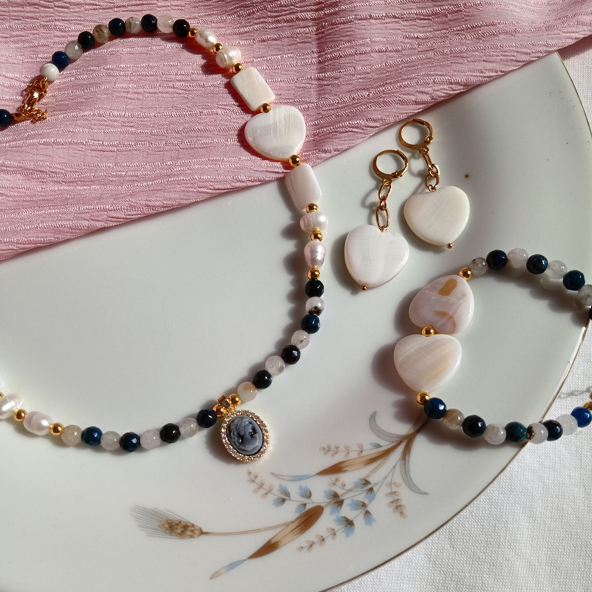 Materials: Natural Pearls, Natural shells, Hematite, Glass beads, High-quality stainless steel.