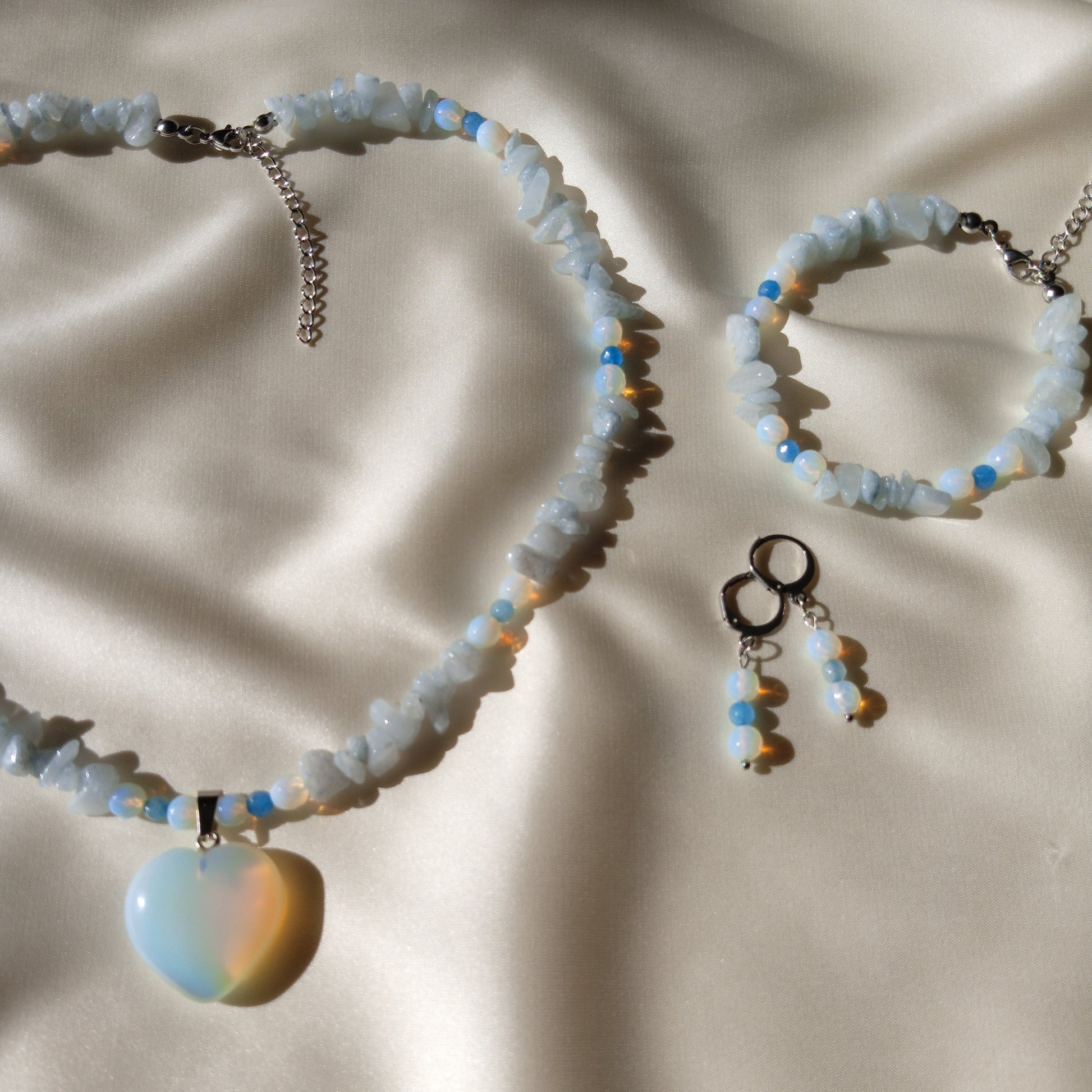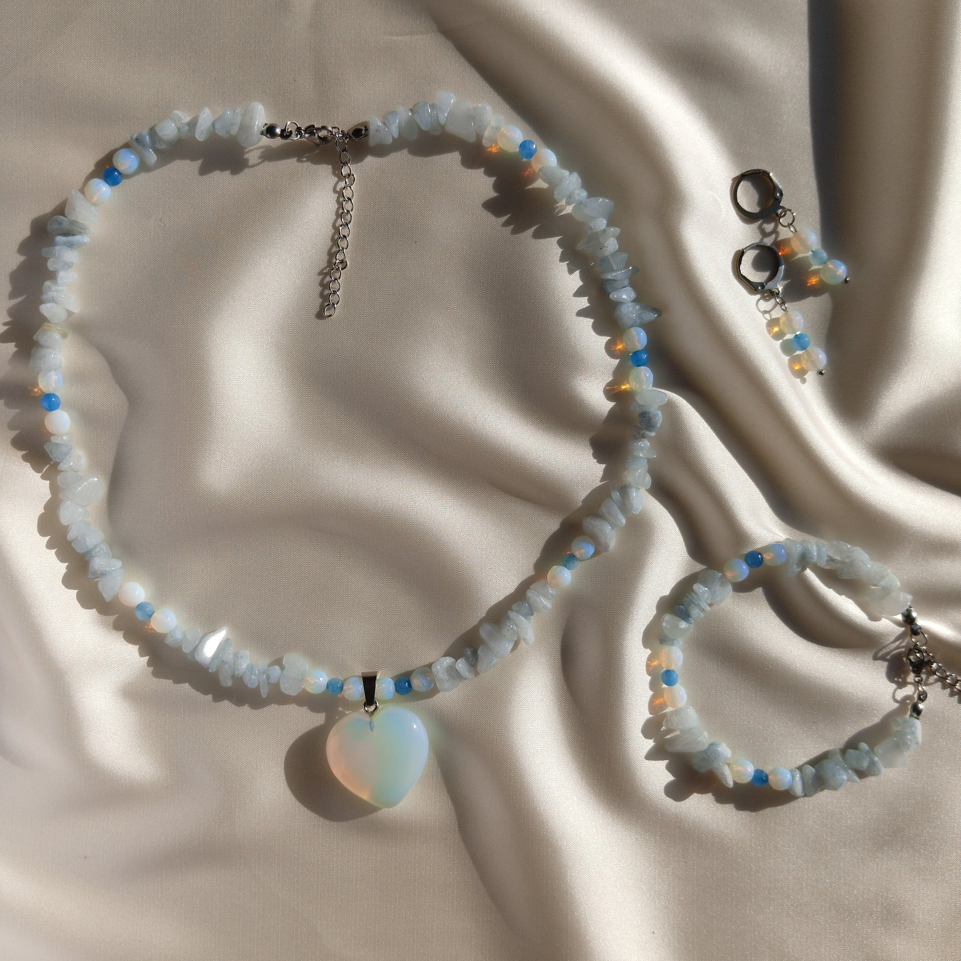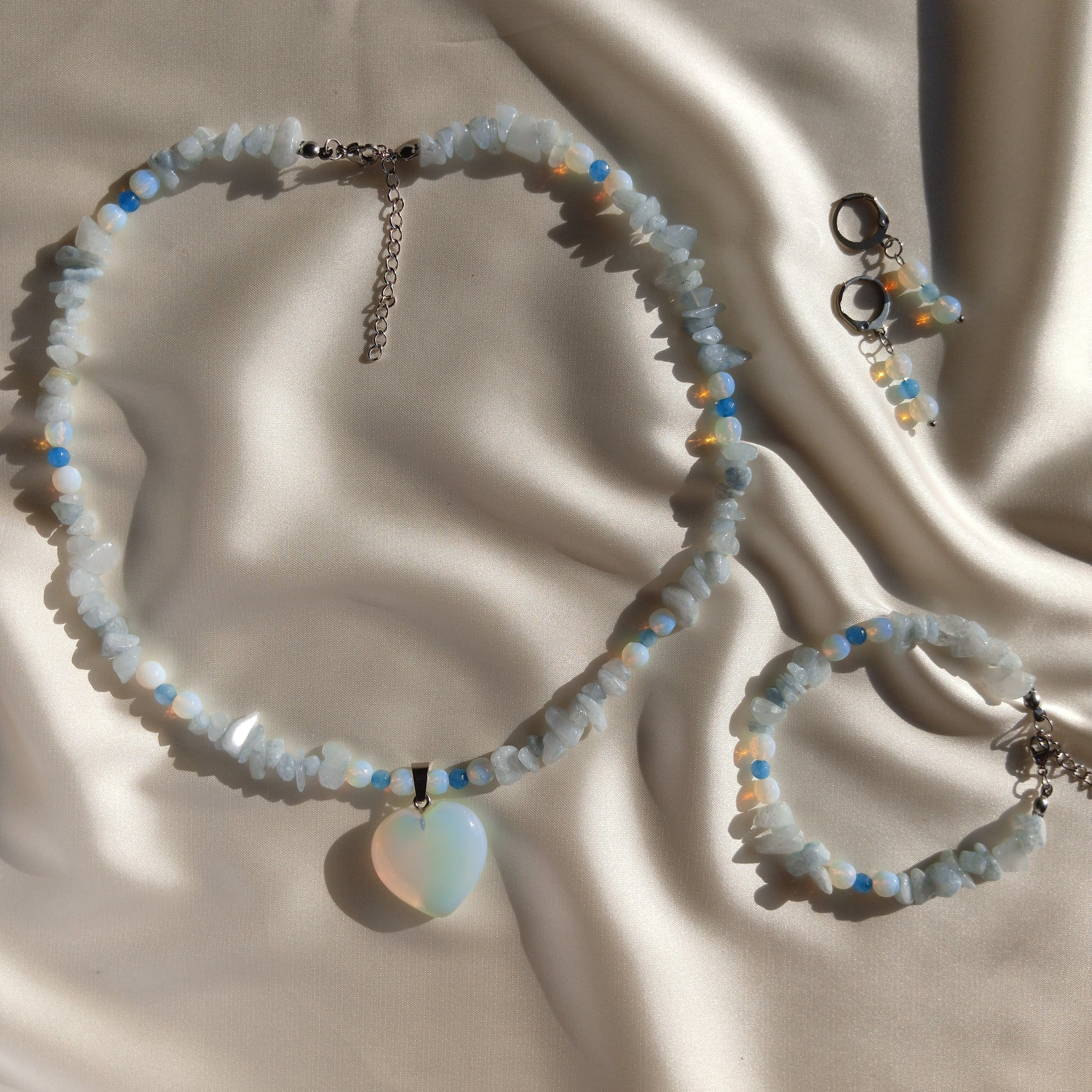 Materials: Opalite, High-quality stainless steel, natural stones, Natural pearls, and delicate glass beads.