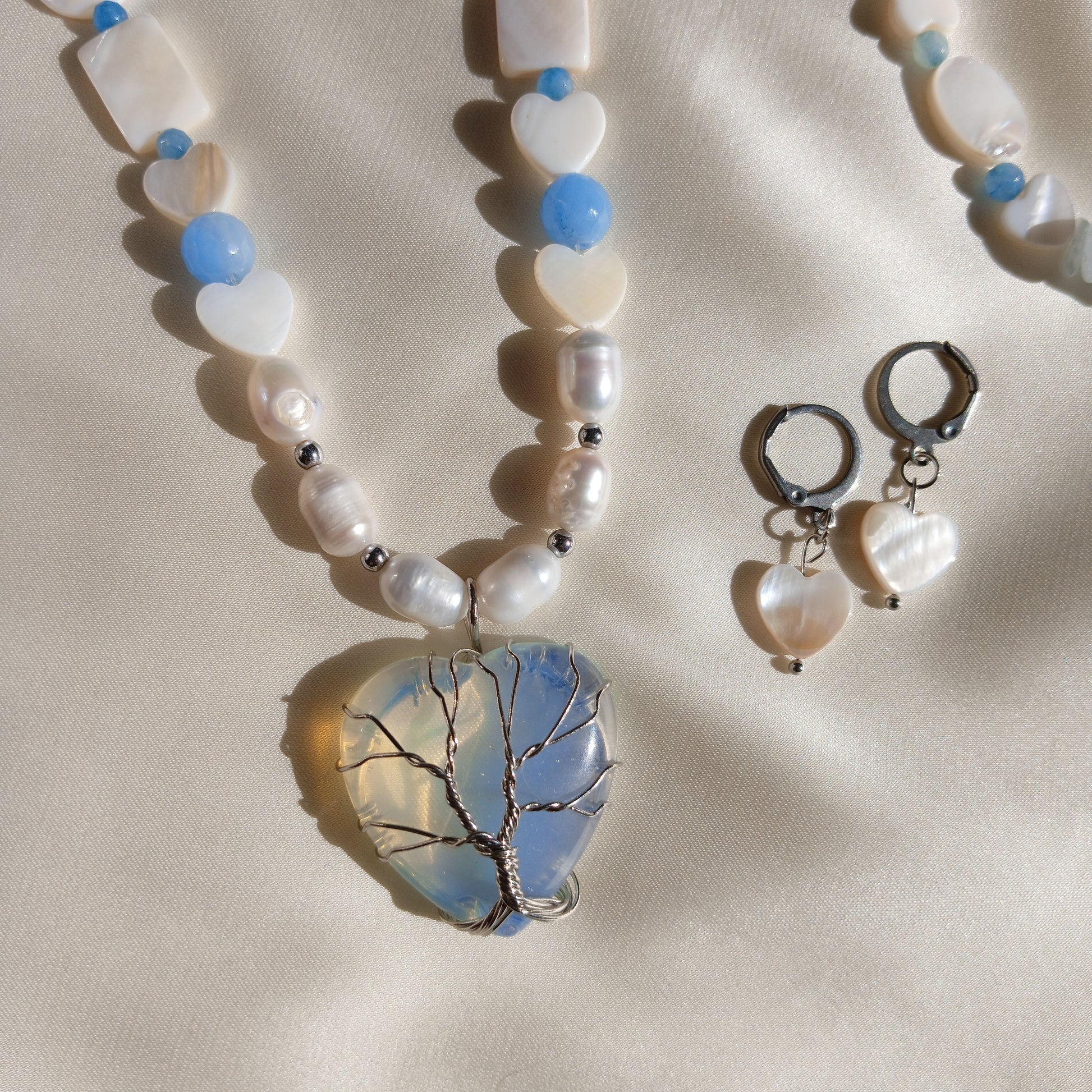 Materials: Opalite, High-quality stainless steel, Natural pearl, Blue Agate, Natural shells, and Natural stones.