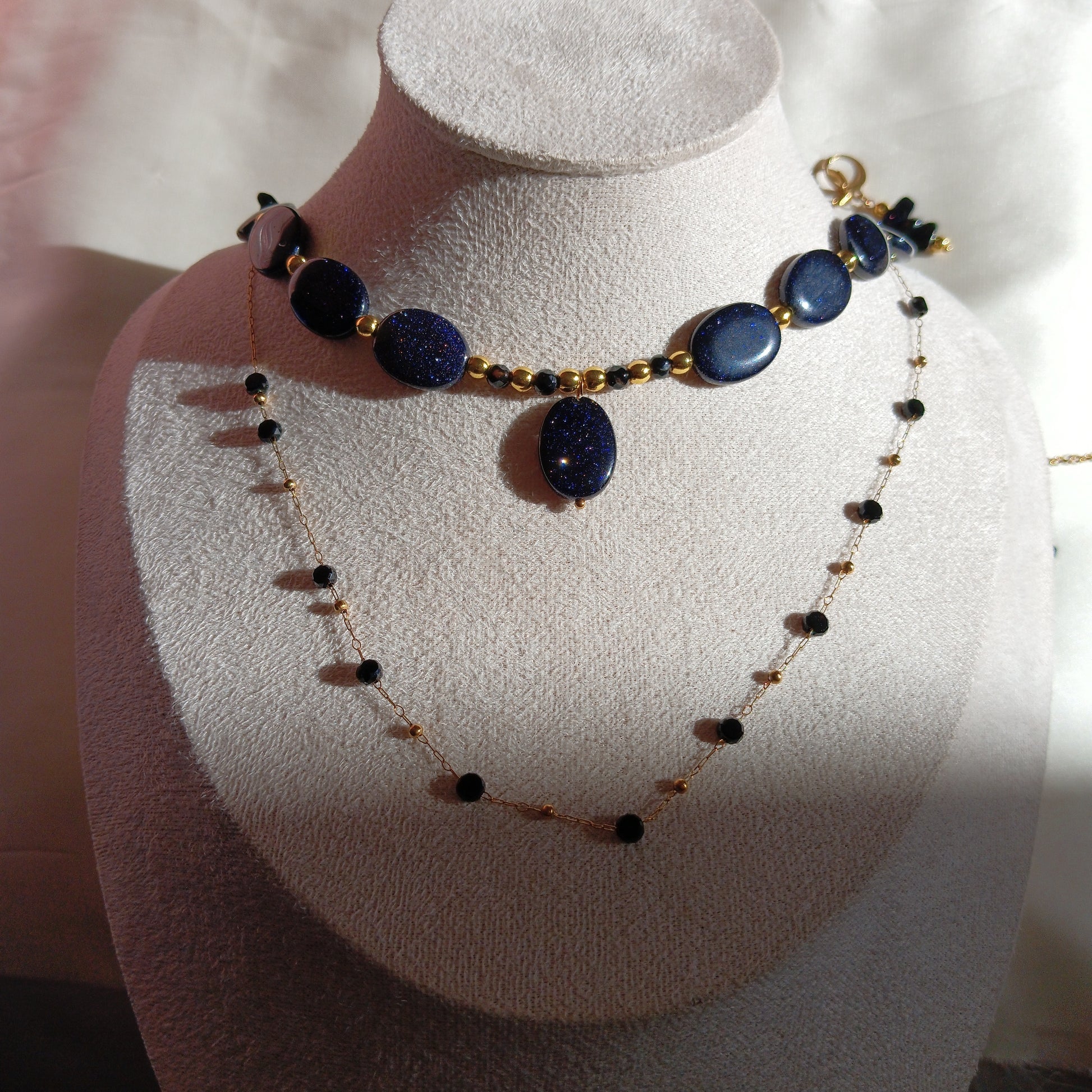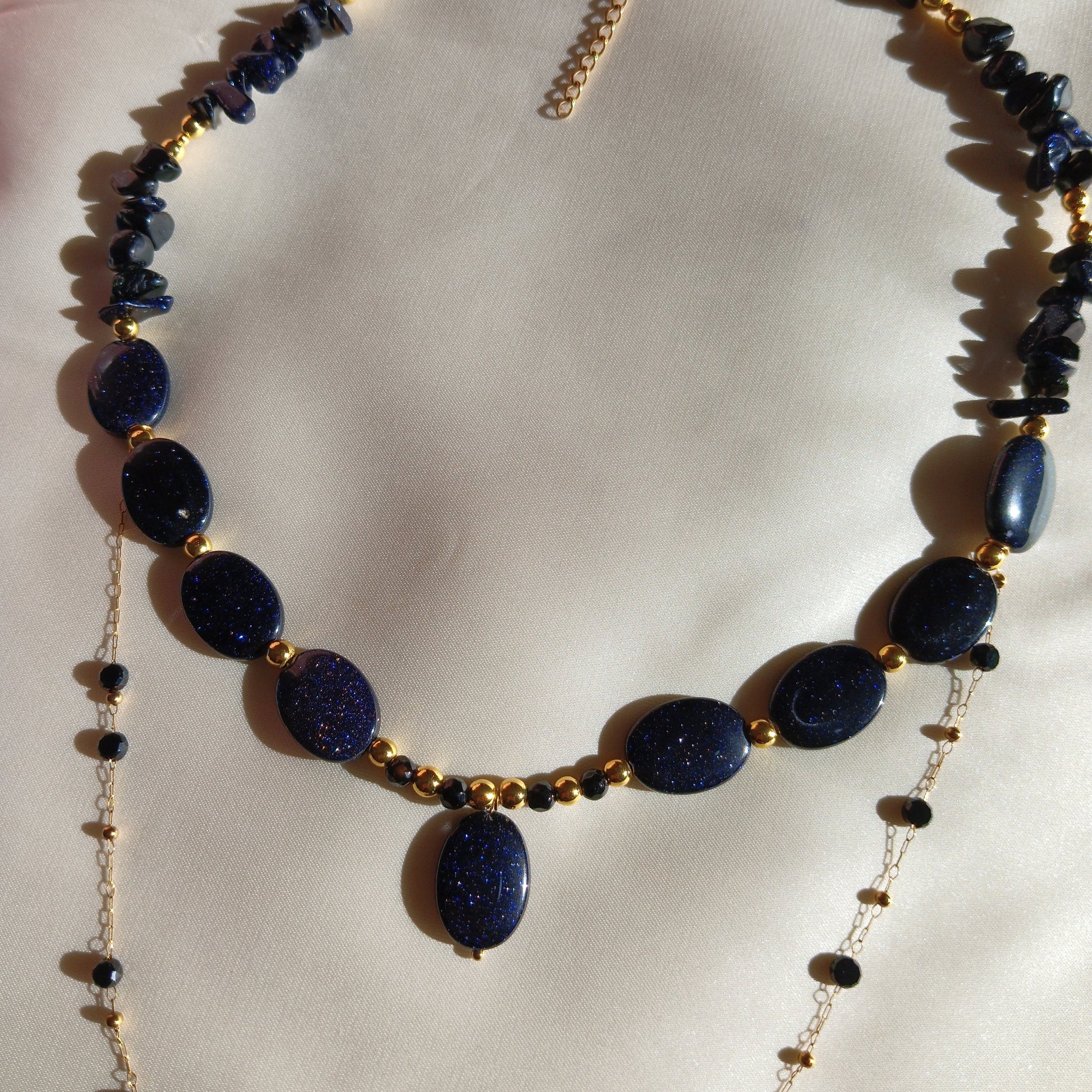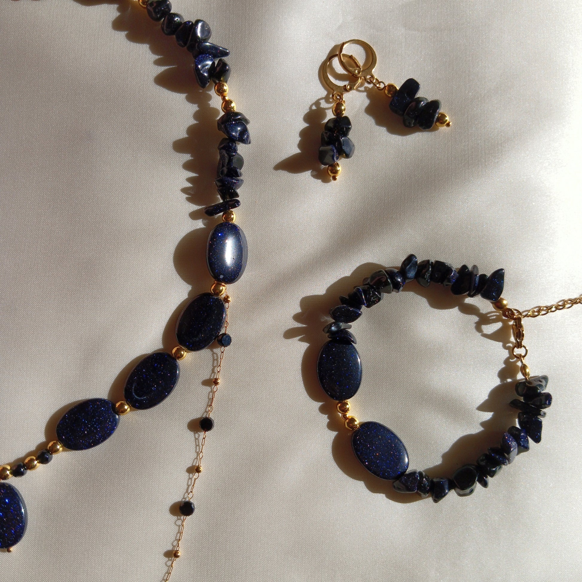 Materials: Blue Goldstone, Hematite, and High-quality stainless steel.
